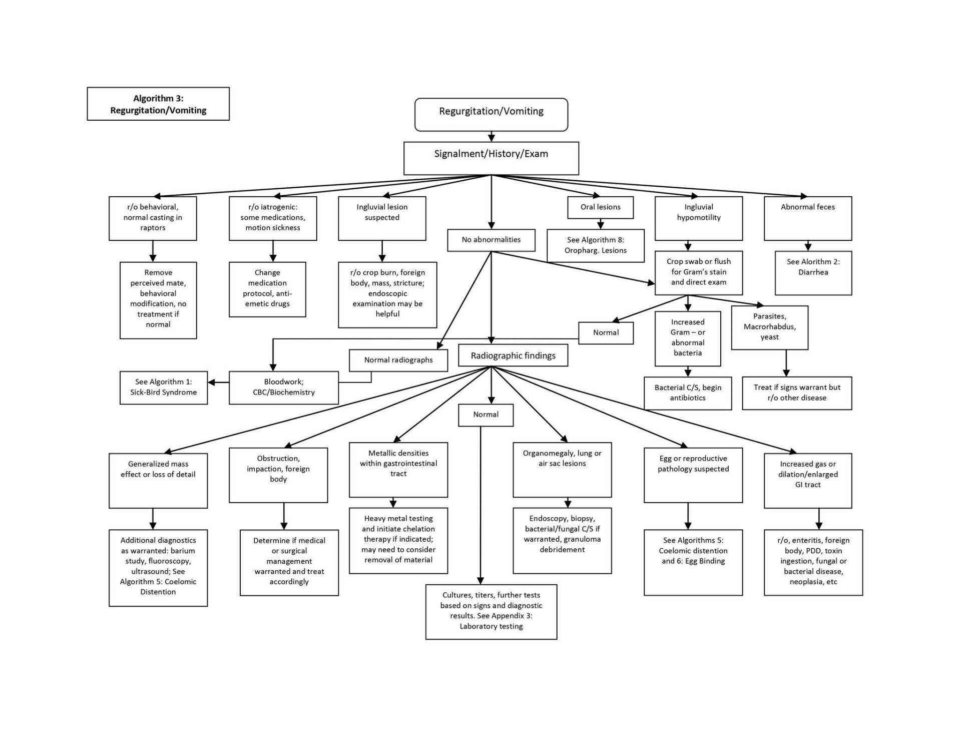 Deze algoritmen zijn ontworpen om systematisch een differentiaaldiagnose te maken bij vogels met veelvoorkomende maar soms vaag gepresenteerde symptomen. Ze benadrukken het belang van: